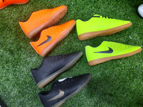 کفش فوتسال نایک رویه چرم در ۳ رنگ فسفری و نارنجی و مشکی سایز ۴۲ و ۴۵ موجود