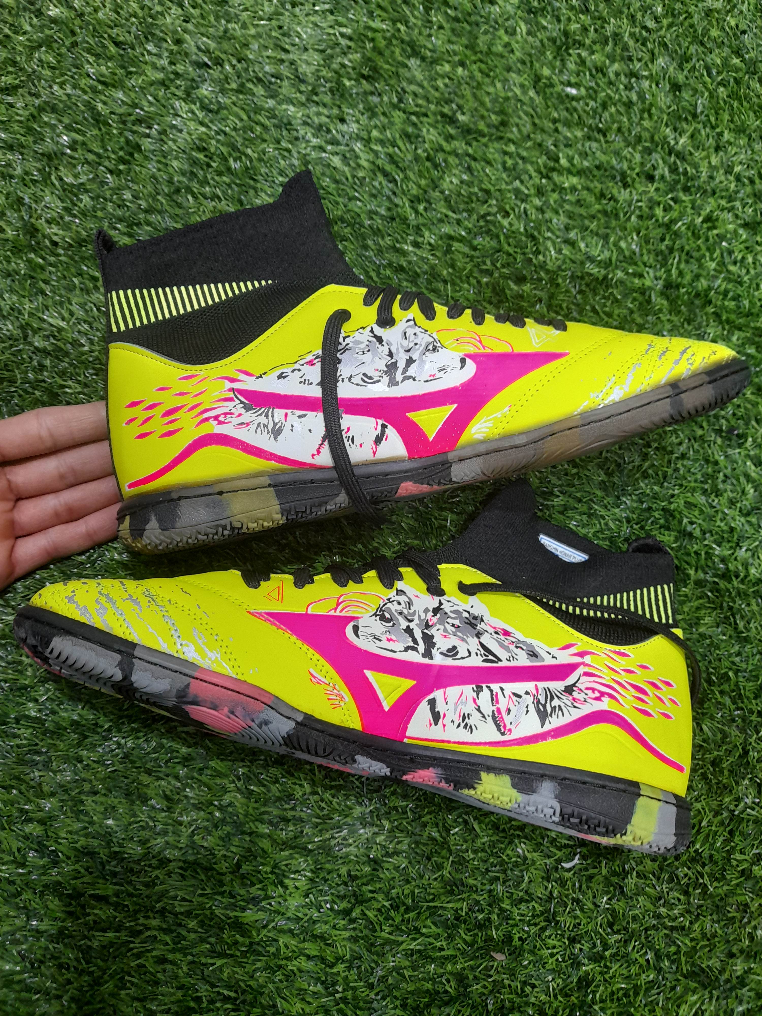 کفش فوتسال میزانو جورابی سایز ۴۵ و ۴۶ رنگ فسفری و مشکی