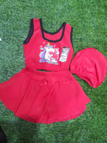 مایو شنا دخترانه دامنی بچگانه رنگ صورتی و قرمز و فسفری و نارنجی سایز ۱ تا ۴