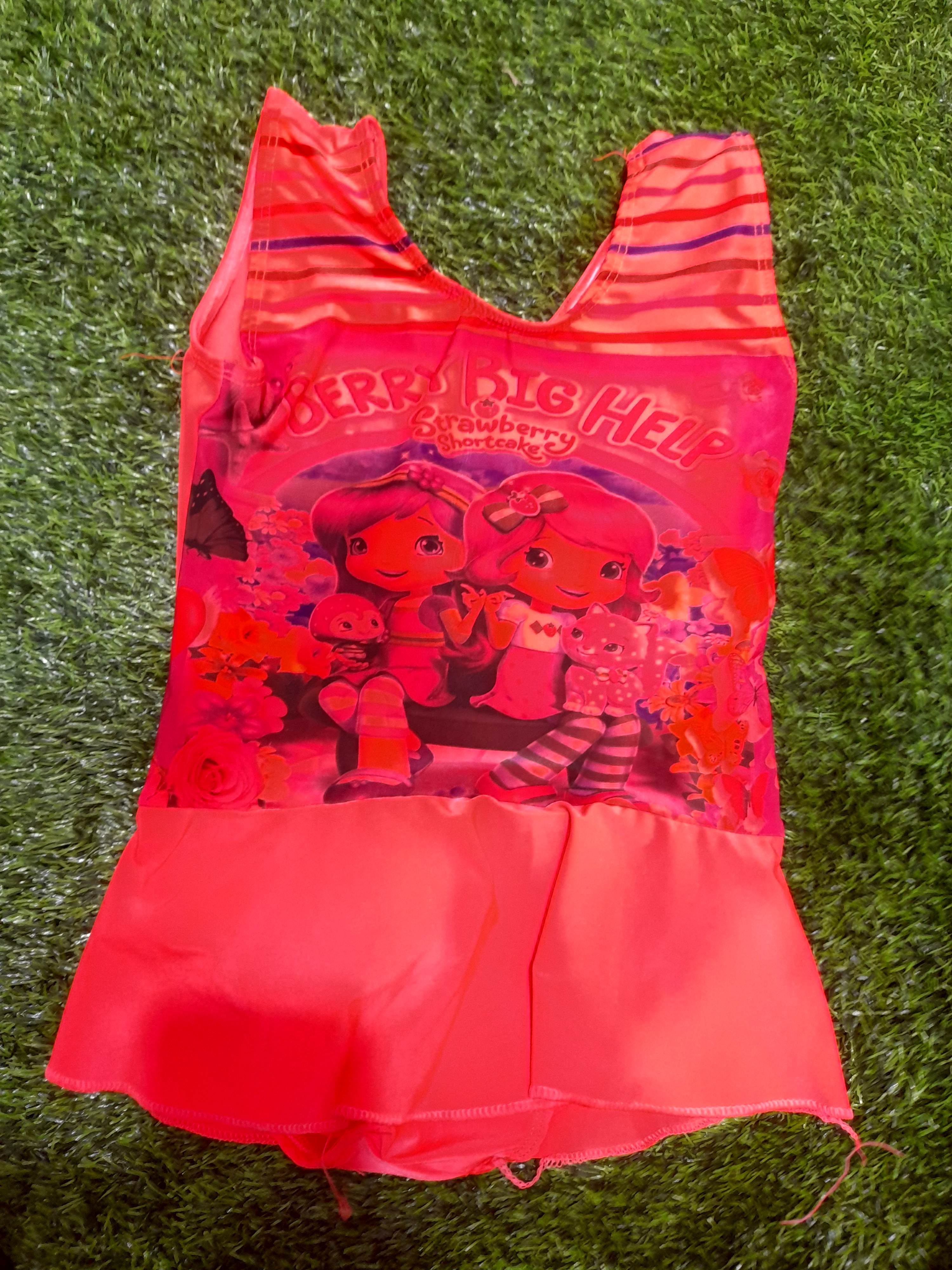 مایو شنا دخترانه دامنی بچگانه رنگ صورتی و قرمز و فسفری و نارنجی سایز ۱ تا ۴