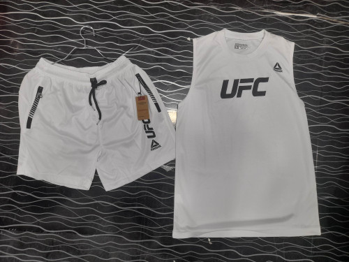 ست ورزشی رکابی شلوارک یو اف سی مشکی و سفید سایز لارج تا ۳ ایکس لارج