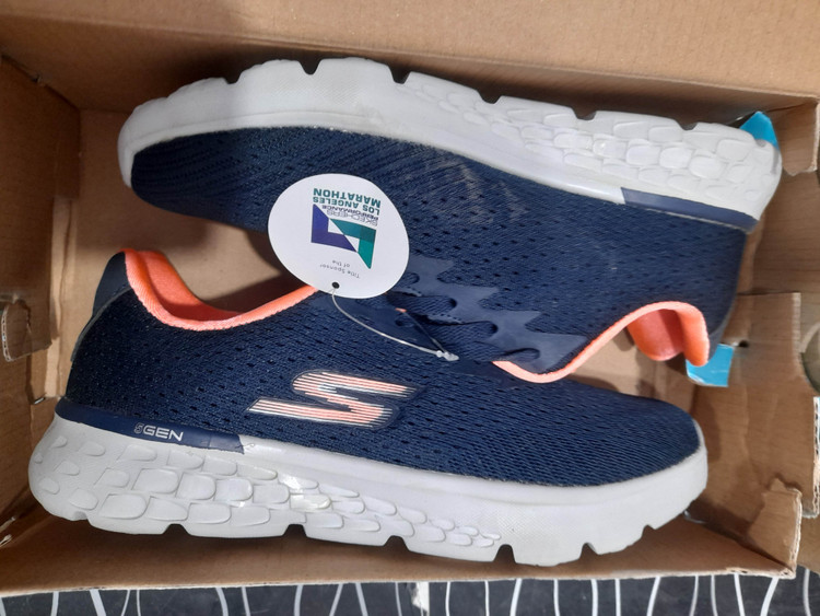کفش پیاده روی اسکیچرز خارجی ابی سفید سایز ۴۱ و طوسی داخل صورتی سایز ۳۹