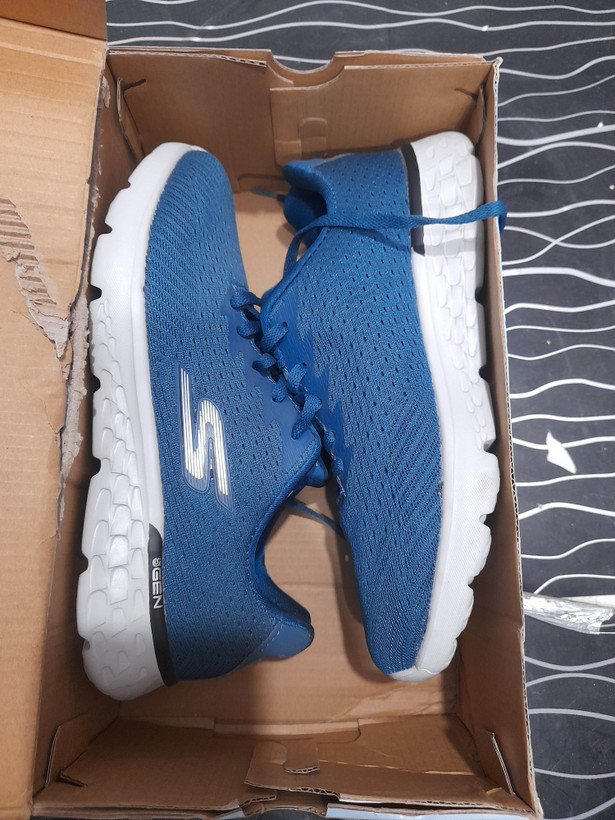 کفش پیاده روی اسکیچرز خارجی رنگ آبی زیره سفید سایز ۴۱