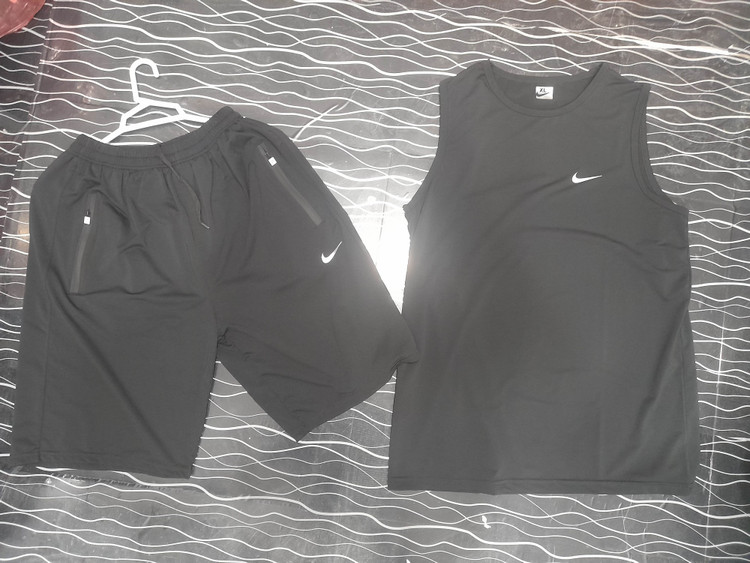 ست ورزشی رکابی شلوارک نایک رنگ مشکی و طوسی سایر لارج تا ۲ ایکس لارج