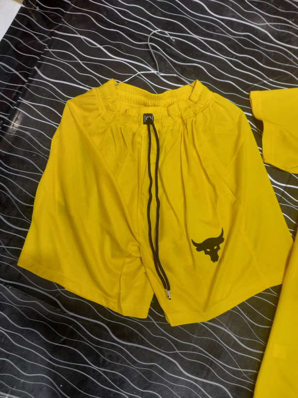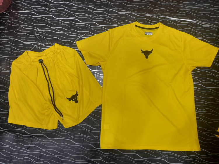 ست ورزشی تیشرت شلوارک زرد رنگ سایز لارج تا ۴ایکس لارج