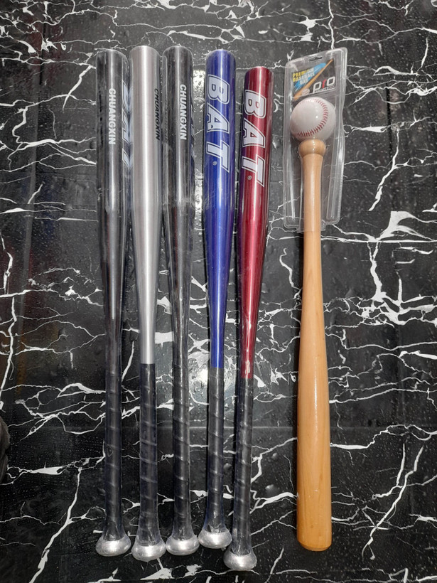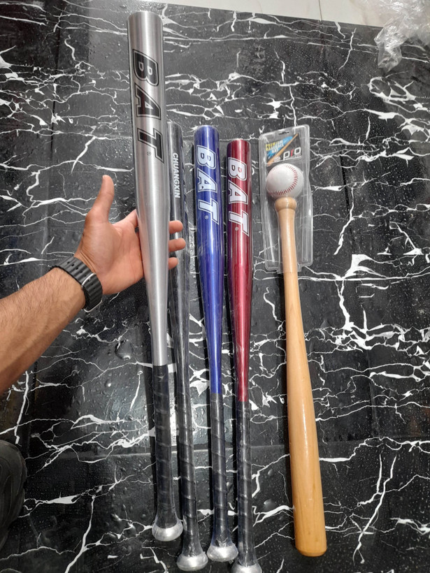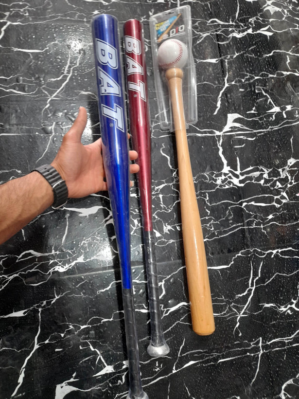 چوب بیسبال و راکت بیسبال فلزی در ۳ رنگ مشکی و آبی و قرمز و استیل طوسی و چوبی همراه توپ