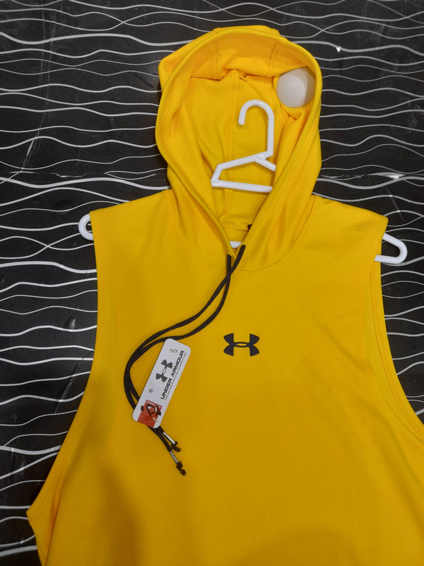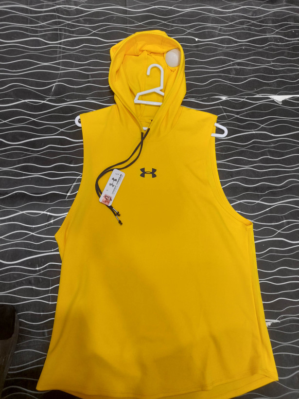 رکابی ورزشی کلاه دار زرد و قرمز سایز لارجتا ۲ ایکس لارج