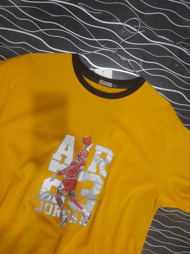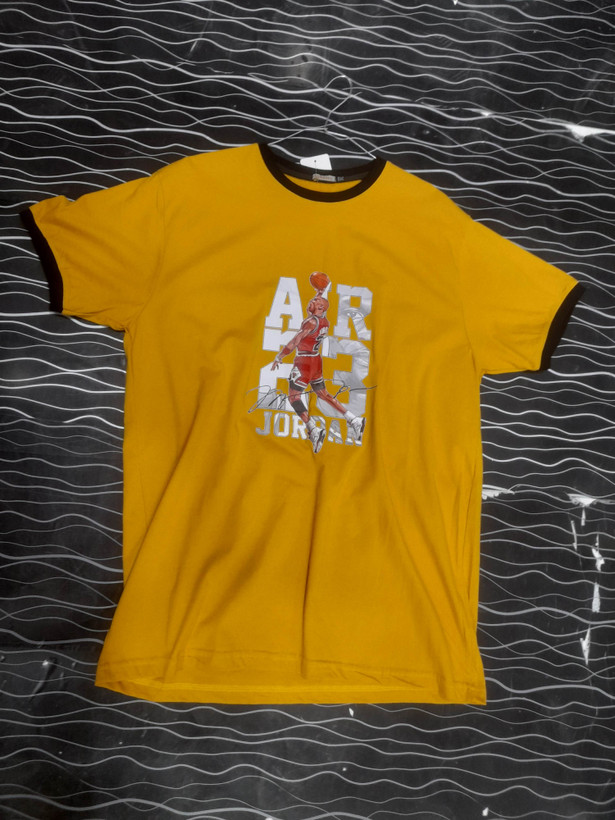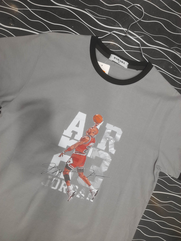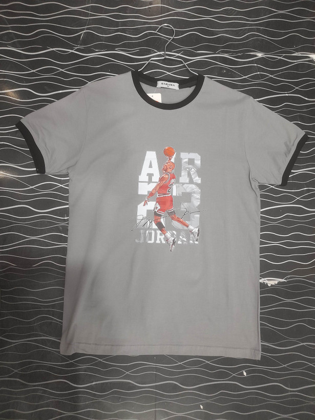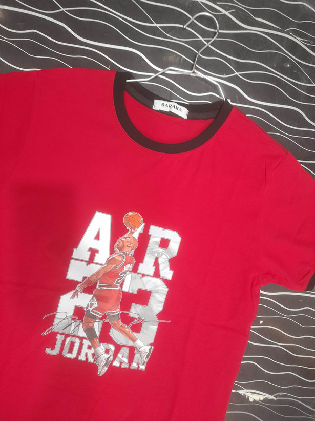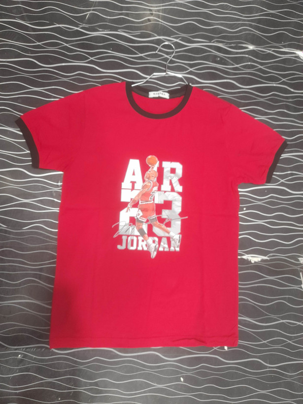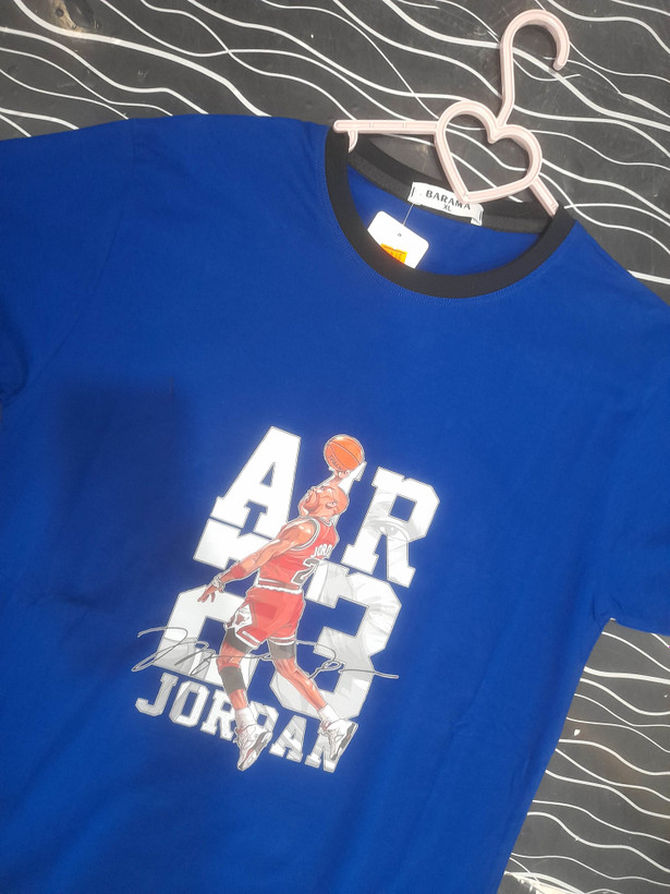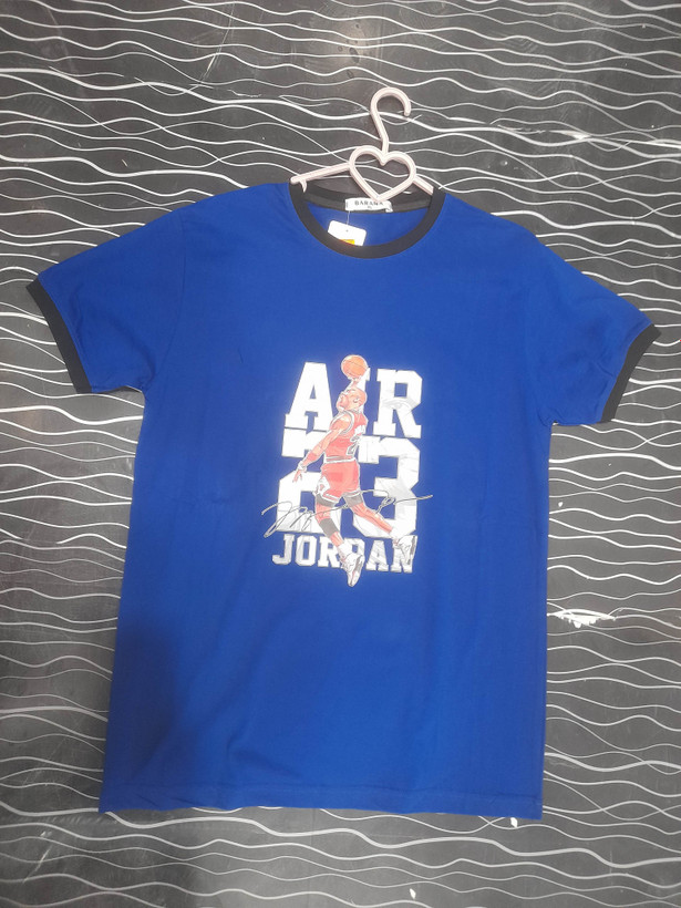 تیشرت نخ پنبه ایر ۲۳ جردن رنگ آبی و قرمز و زرد و طوسی