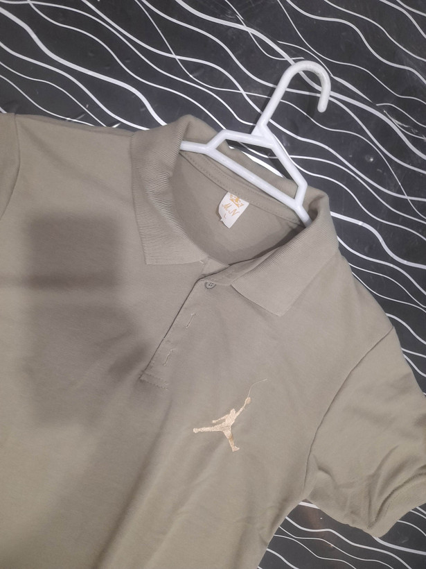 تیشرت یقه دار مردانه جردن جنس نخ رنگ مشکی و زیتونی