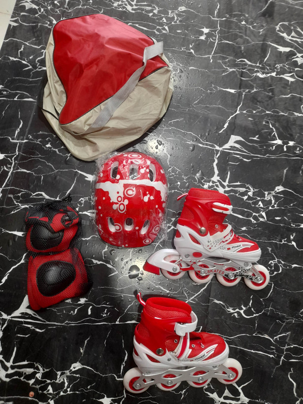 کفش اسکیت خارجی هارد آبی و مشکی و قرمز در ۳ سایز ۳۰ تا۳۳ و ۳۴ تا ۳۸ و ۳۸ تا۴۲