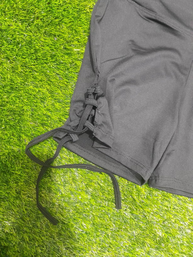 شرتک ورزشی مشکی زنانه بغل طرح دار فری سایز کمر ۳۴ سانت فول کش