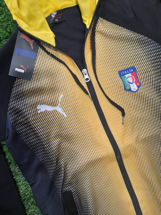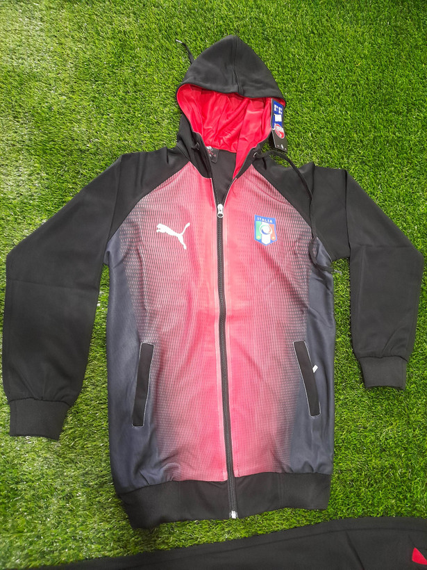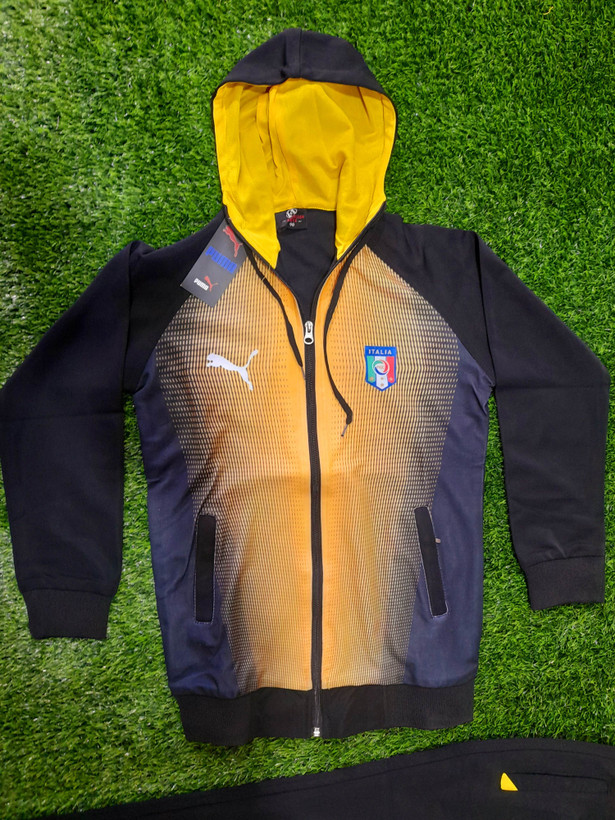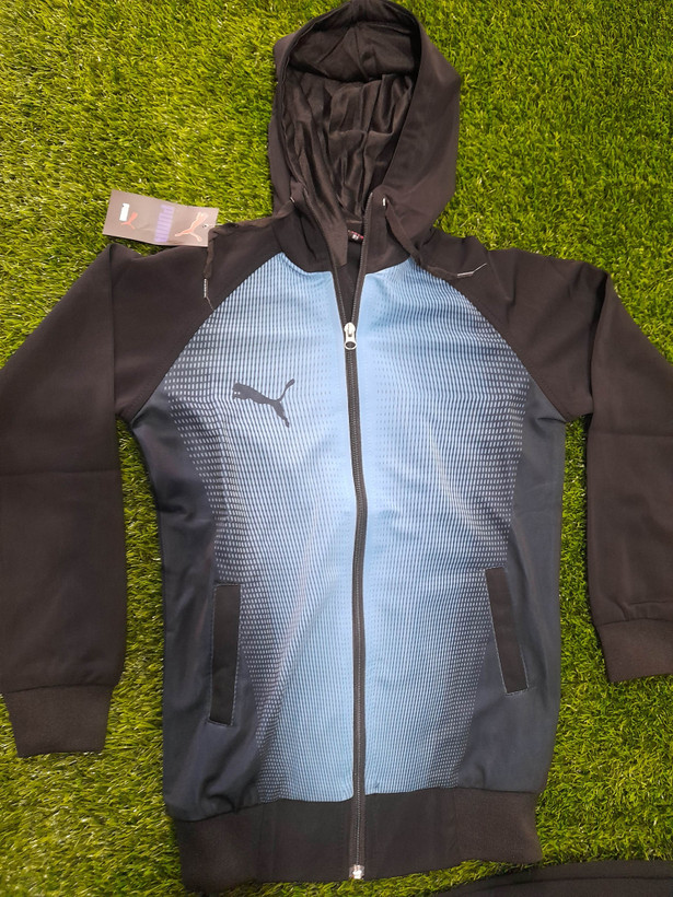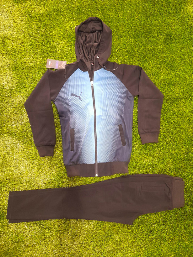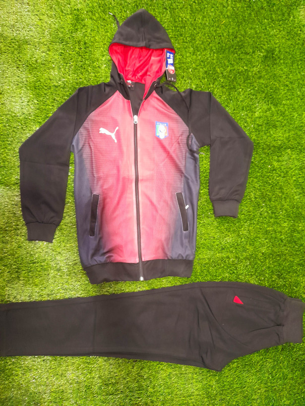 گرمکن شلوار بچگامه برند پوما کلاه دار جنس غواصی رنگ مشکی قرمز و مشکی آبی و مشکی زرد