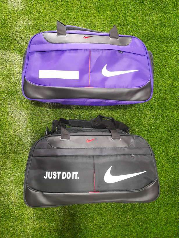ساک‌ورزشی نایک برزنتی بنفش و مشکی بزرگ‌و‌جادار طول ۵۰ عرض ۳۰ سانت