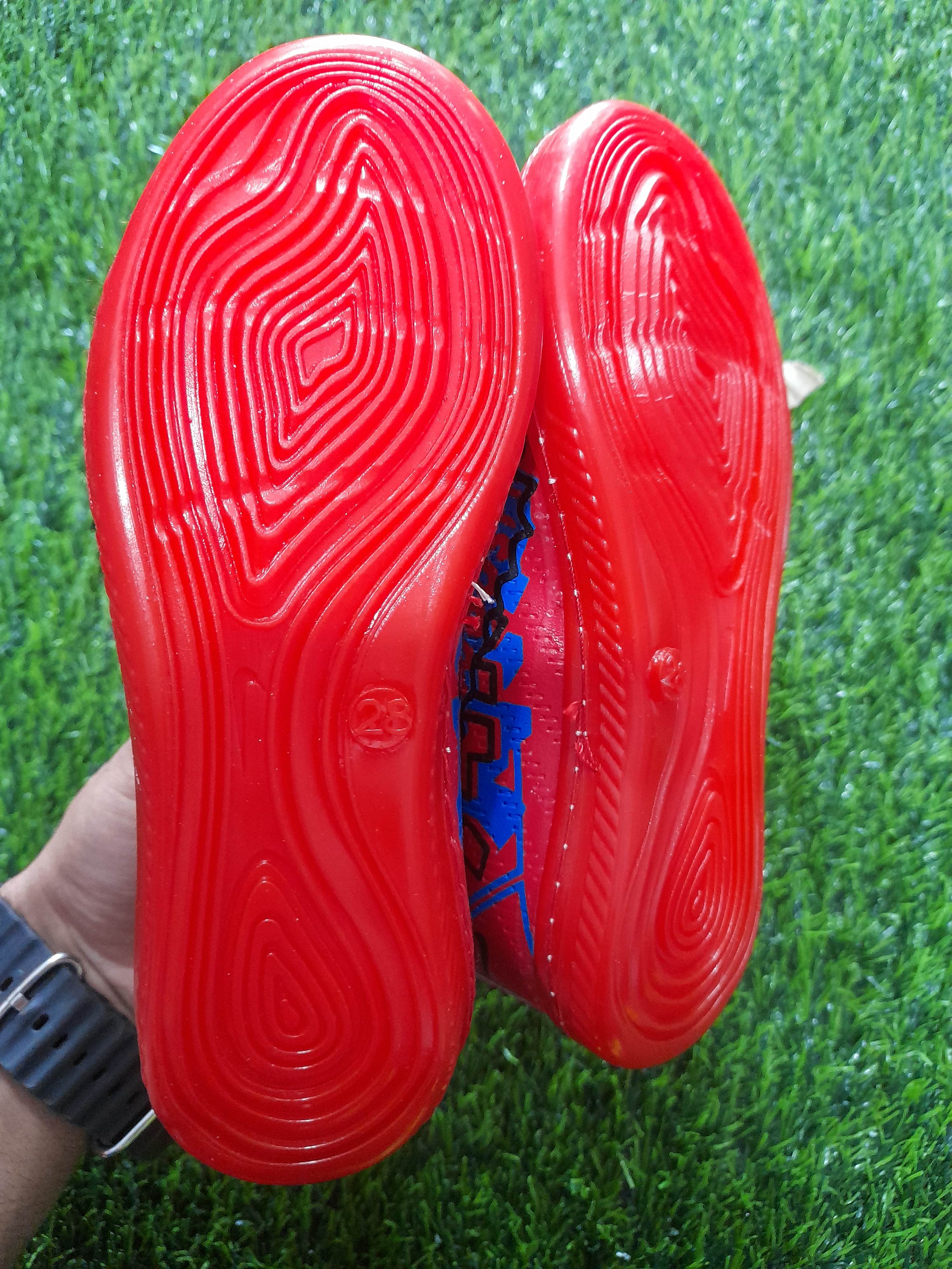 کفش فوتسال بچگانه نقلی سایز ۲۶ تا ۲۹ در ۳ رنگ قرمز و شمکی و فسفری