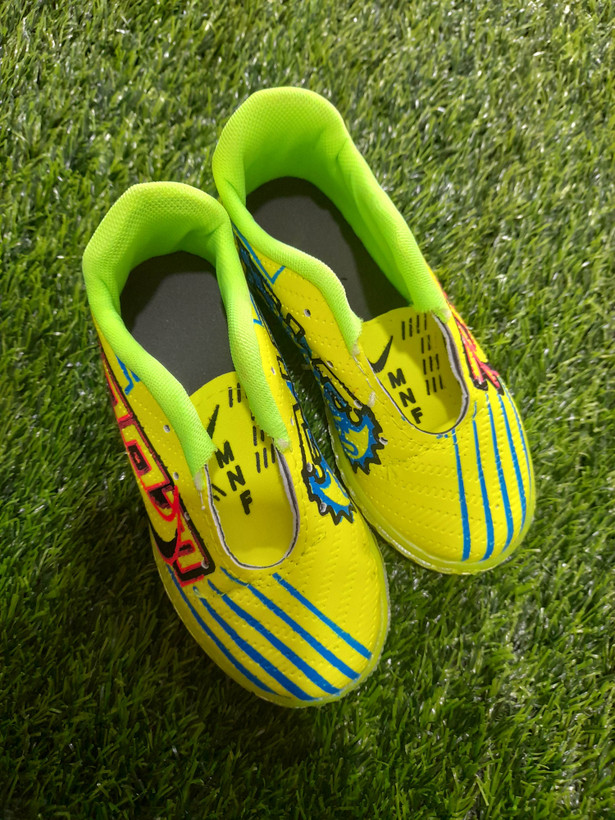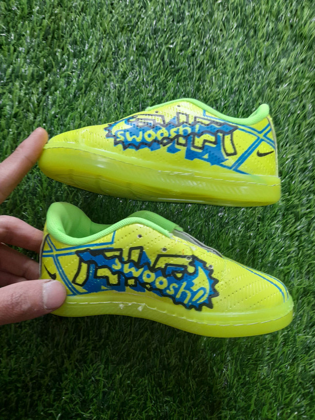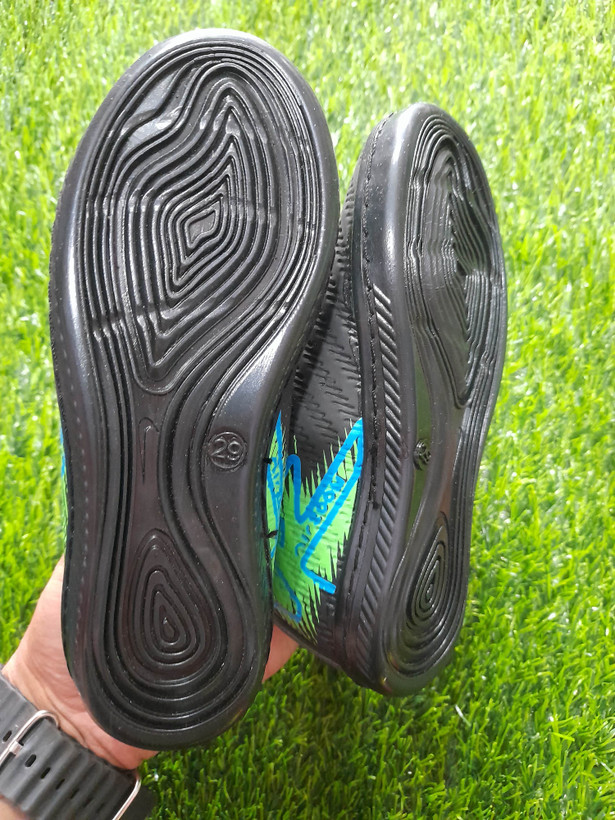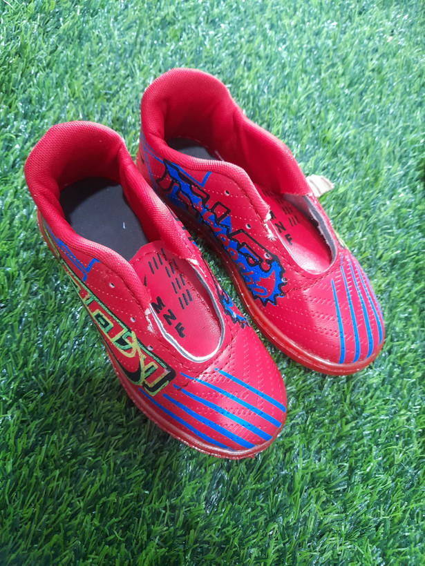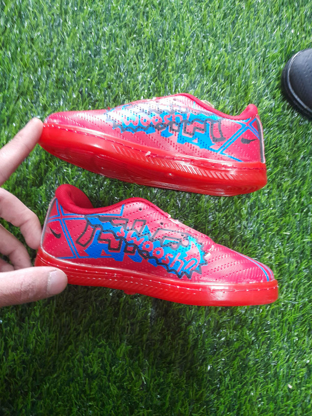 کفش فوتسال بچگانه نقلی سایز ۲۶ تا ۲۹ در ۳ رنگ قرمز و مشکی و فسفری