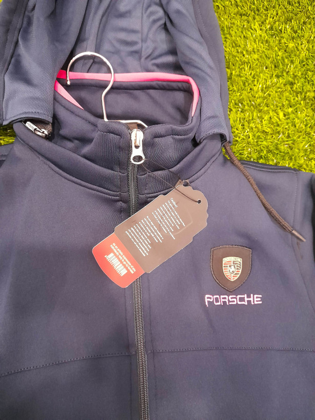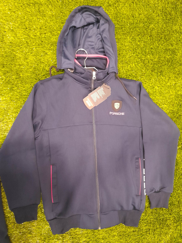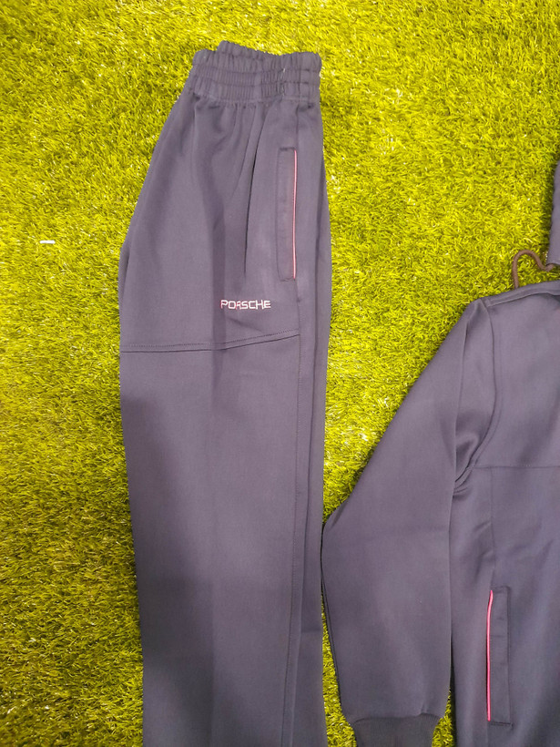 گرمکن شلوار بچگانه برند پرشه پارچه خارجی غواصی گرم بالا گرم رنگ صورتی و سرمه ای کلاه دار جیب ها زیپدار کیفیت عالی و تضمینی