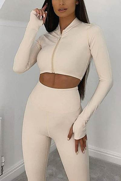 لباس ورزشی زنانه کراپ لگ آستین بلند در ۶ رنگ فری سایز