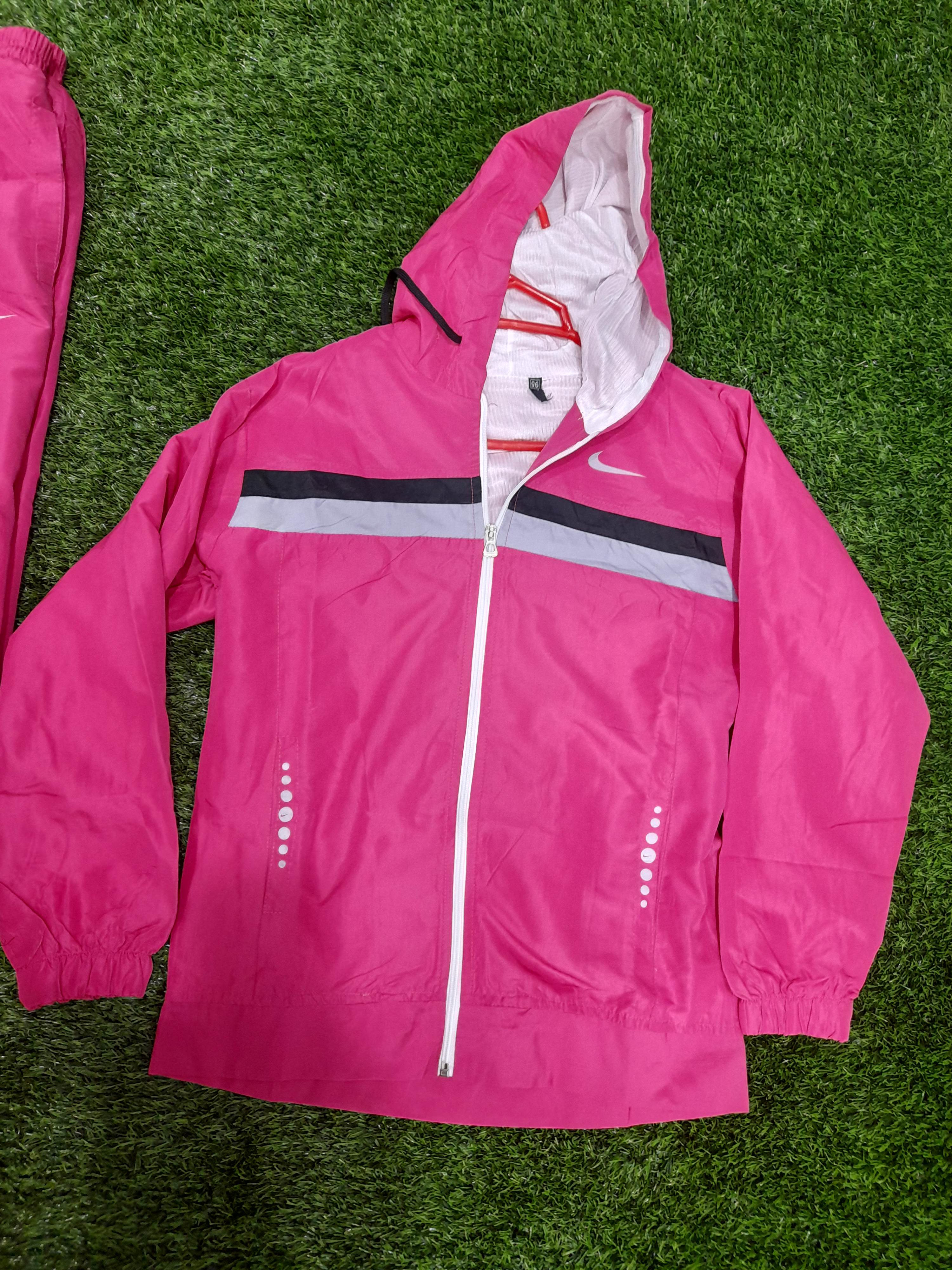 سویشرت شلوار دخترانه صورتی جنس شمعی بادگیری ضد آب کلاه دار آستر دار