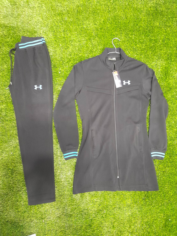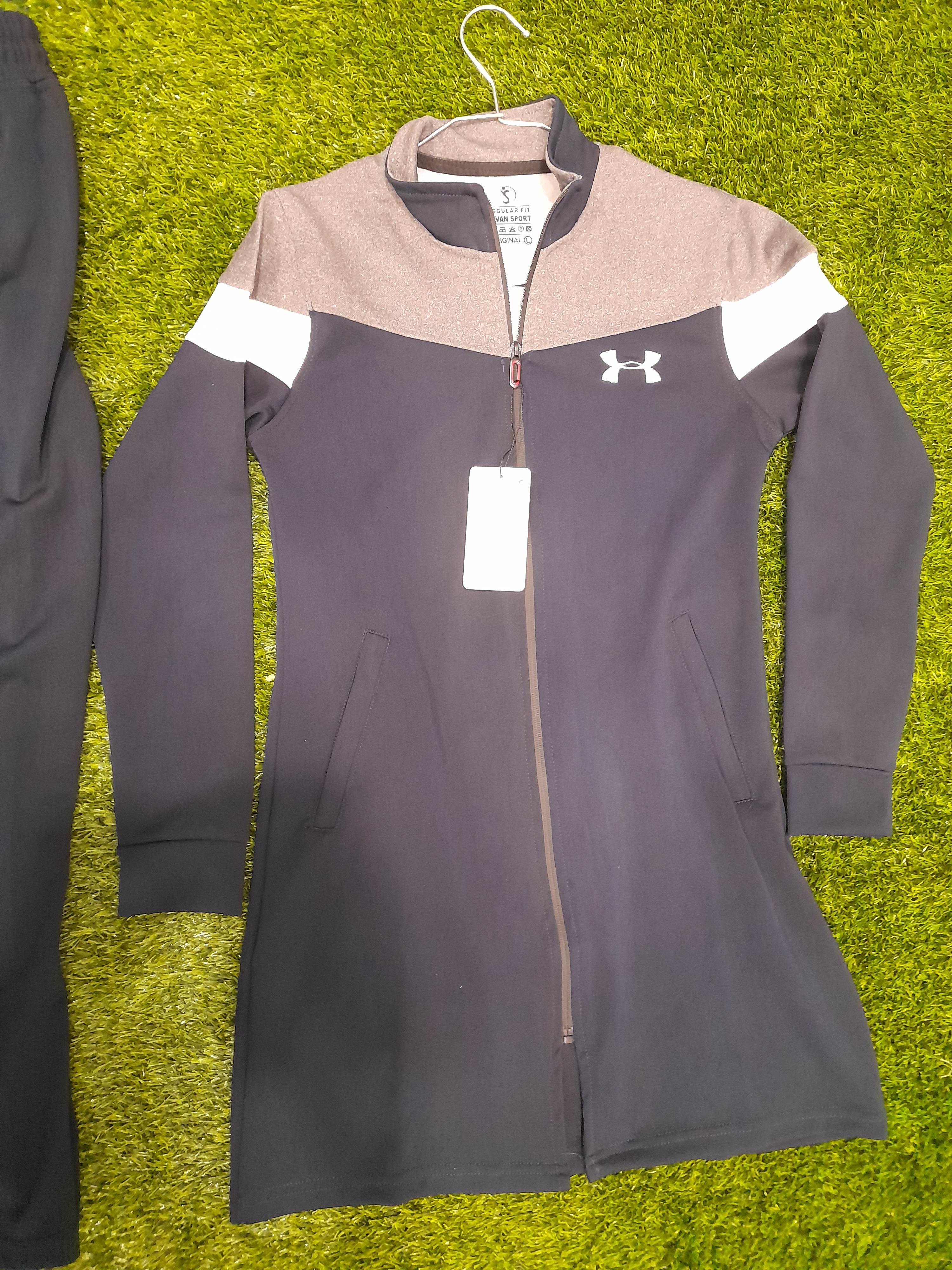 گرمکن شلوار زنانه آندر آمور مشکی طوسی و مشکی نوار آبی سایز لارج