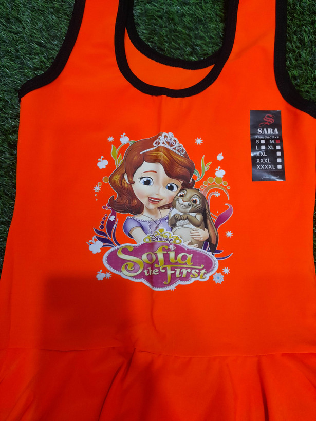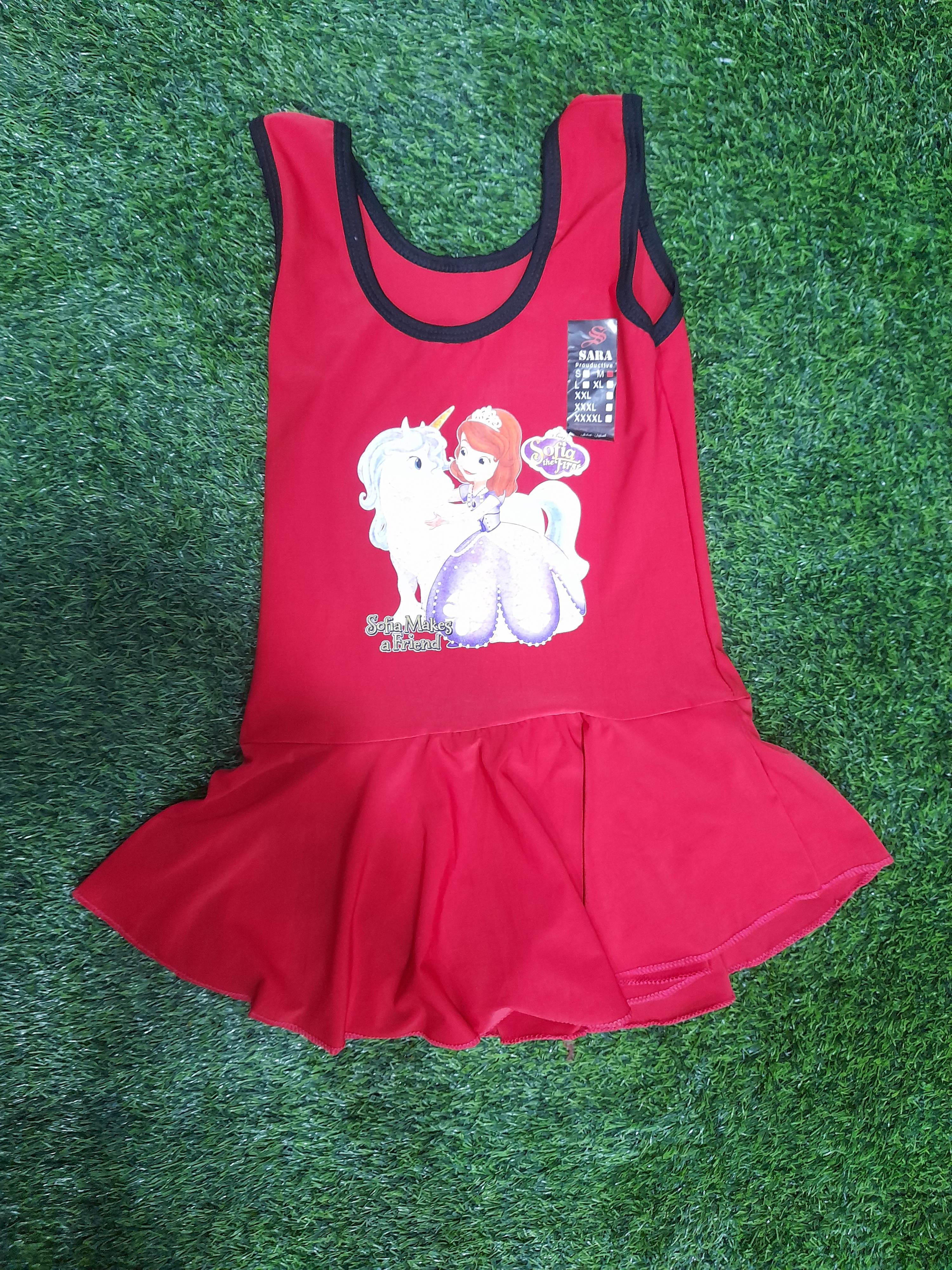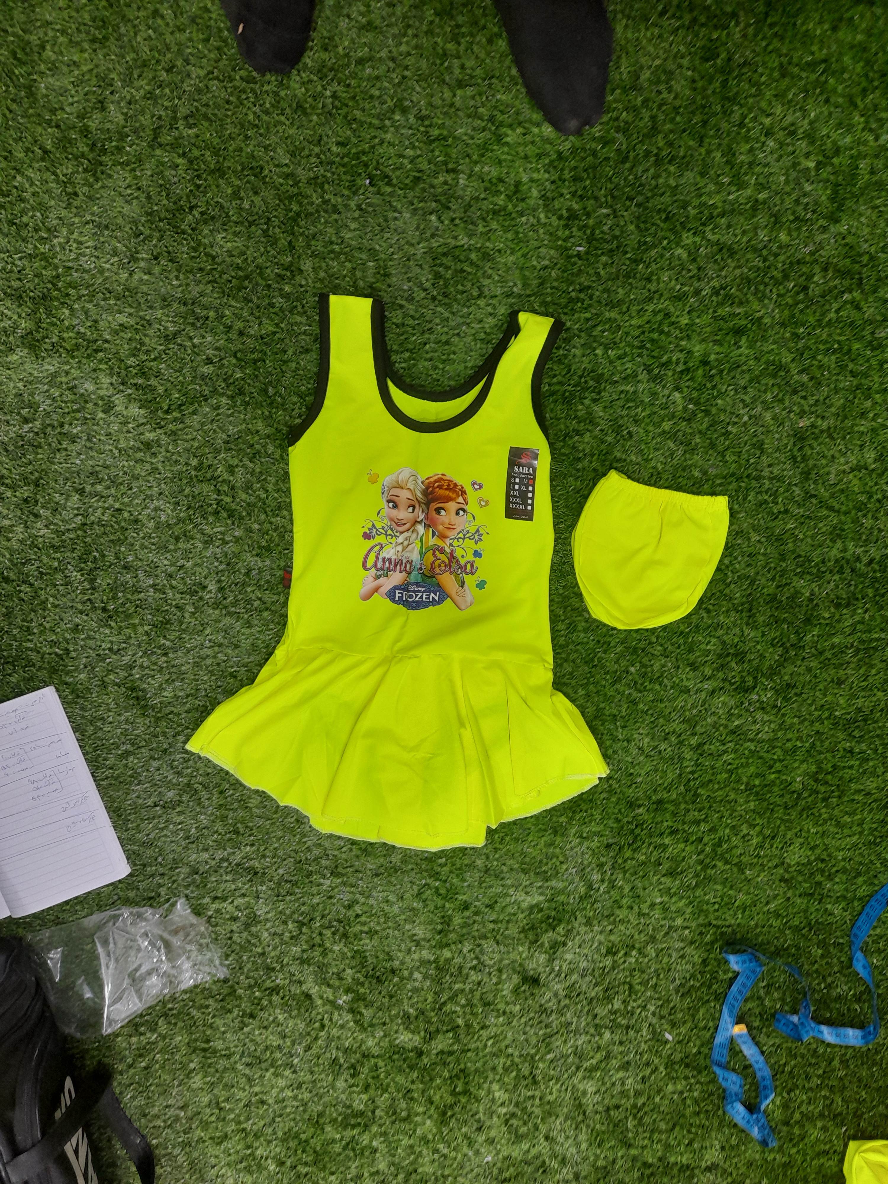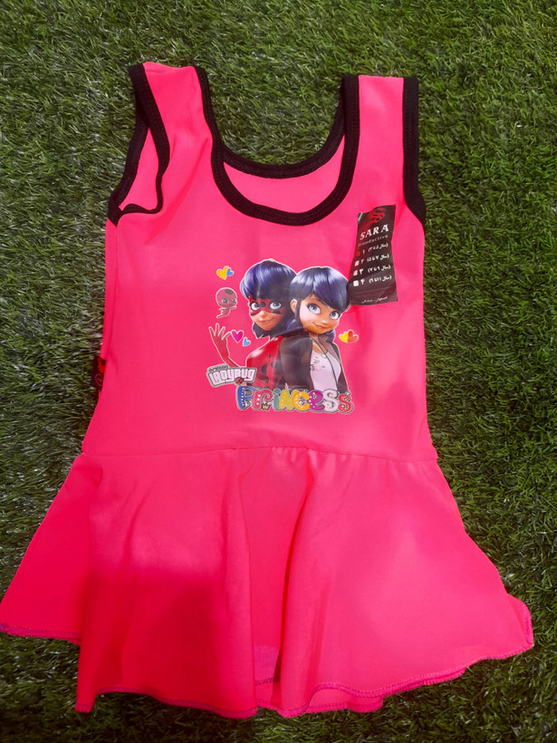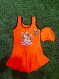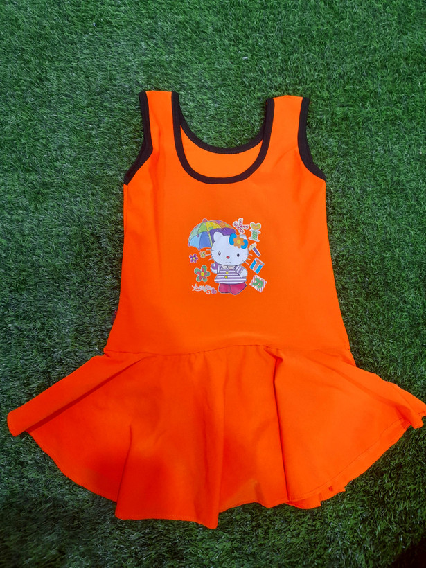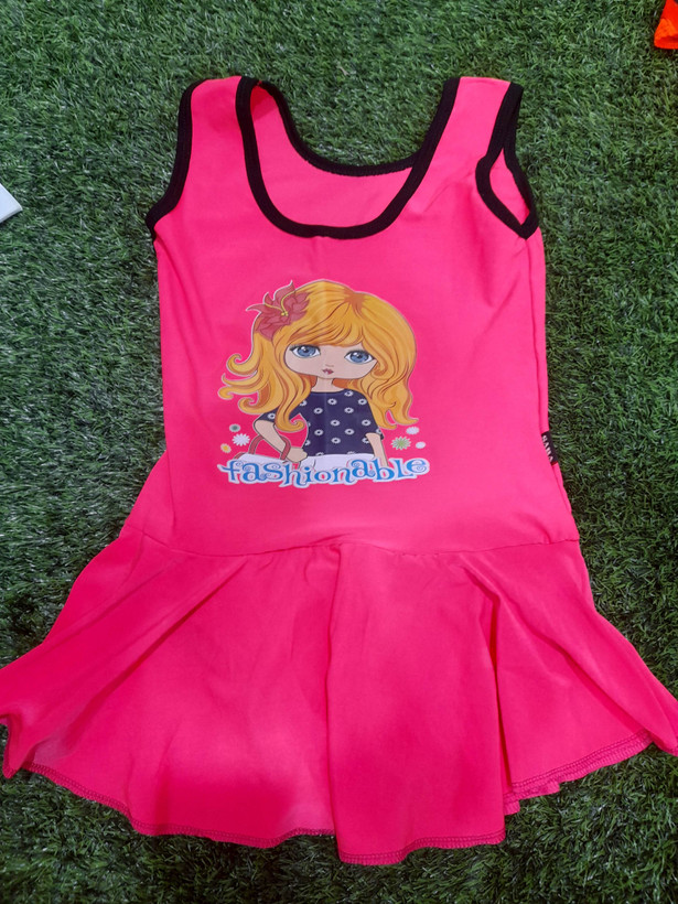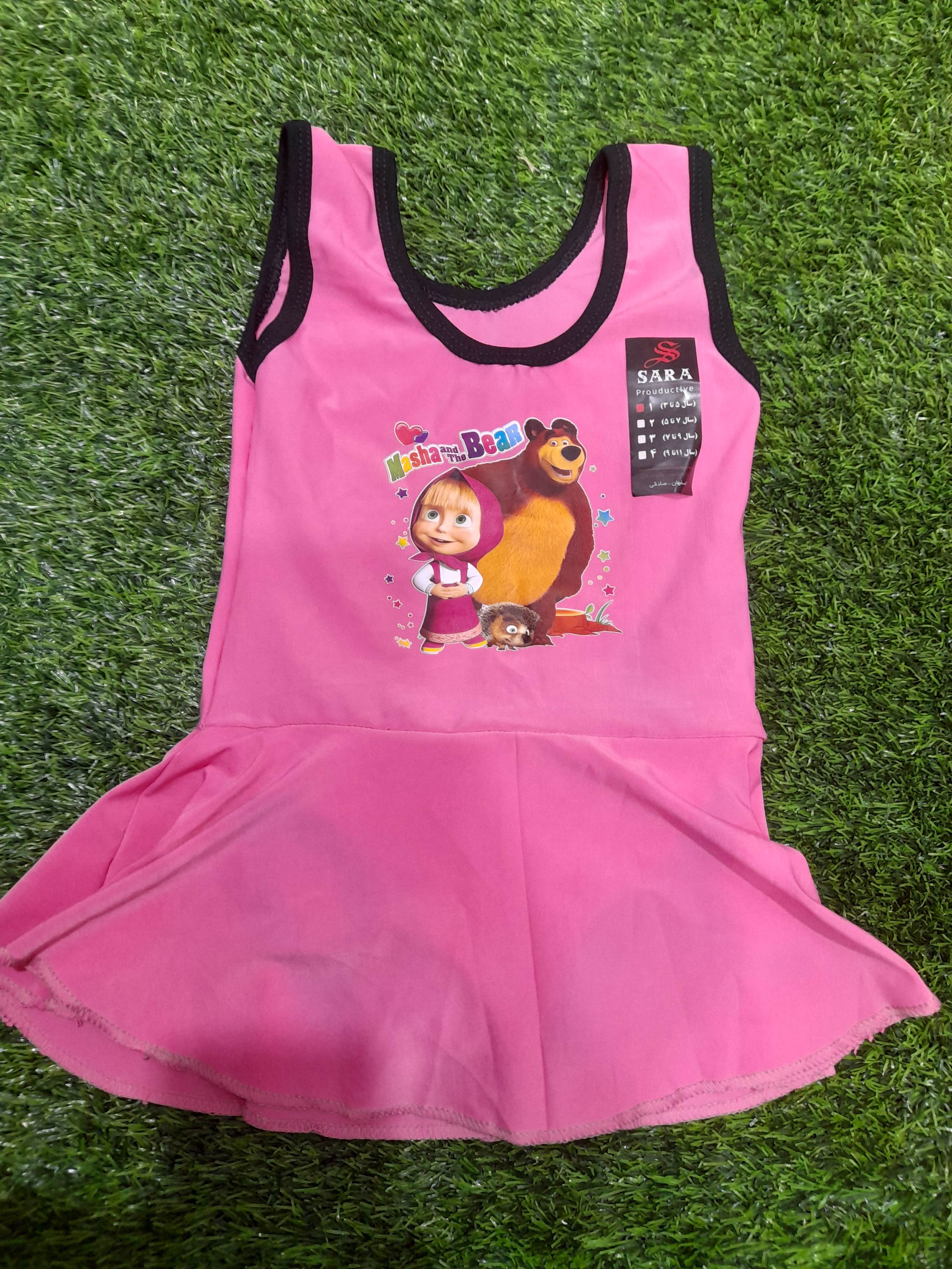 مایو شنا دخترانه دامنی بچگانه رنگ صورتی و قرمز و فسفری و نارنجی سایز ۱ تا ۴