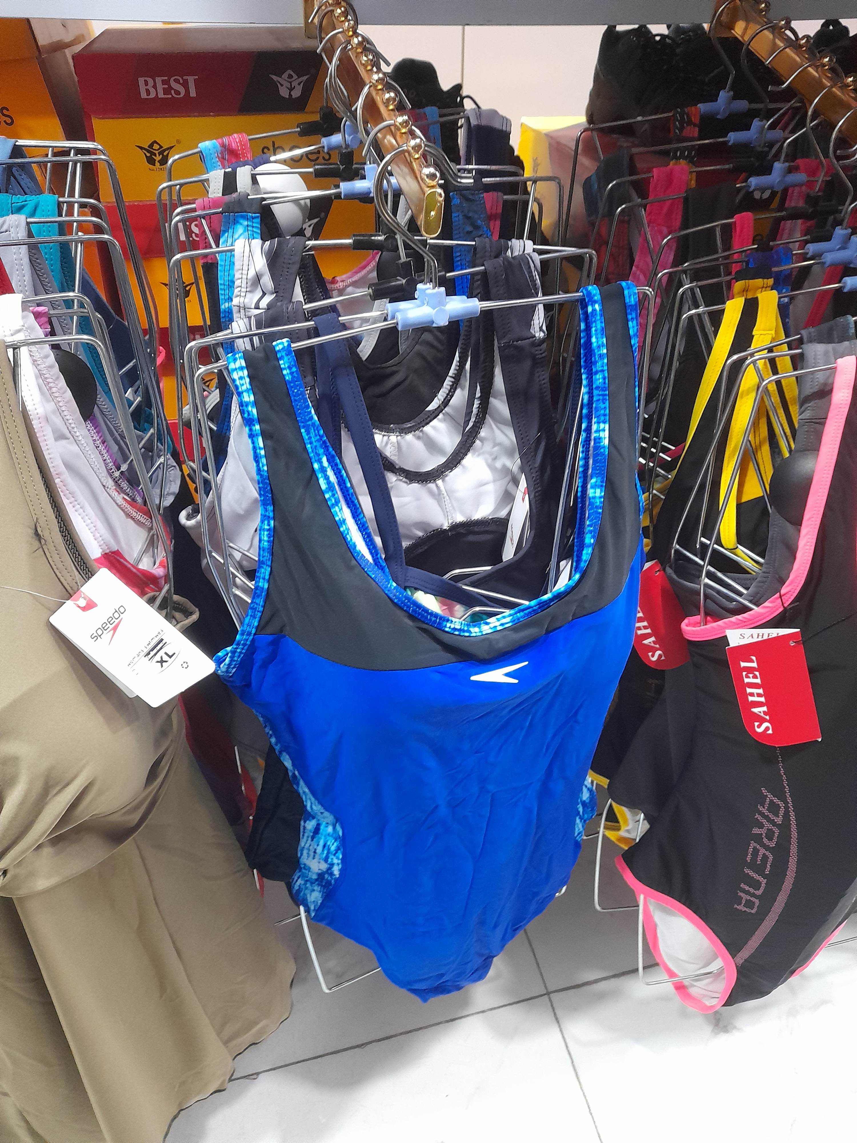 مایو شنا زنانه پشت قهرمانی اسلیپ خارجی سایز لارج تا ۲ ایکس رنگ ابی و مشکی