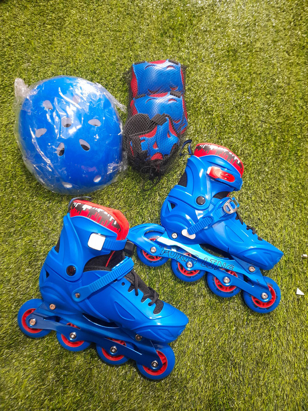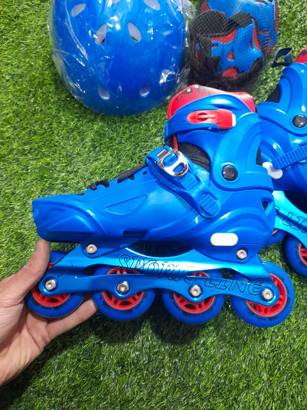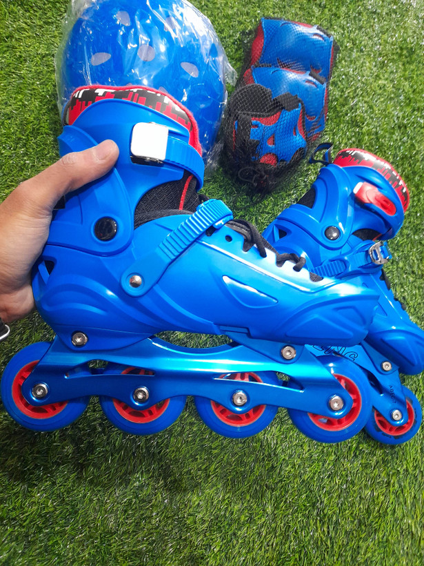 کفش اسکیت خارجی سایز ۳۴ تا۳۷.کفش اسکیت تیغه فلزی.کفش اسکیت خارجی آبی. رویه هارد کیفیت عالی