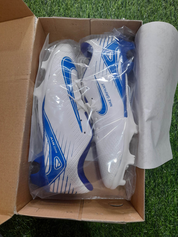 کفش چمن.کفش چمنی.کفش چمن فوتبال.کفش چمن برند نایک سفید زیره آبی سایز ۴۱ تا ۴۵ کیفیت عالی