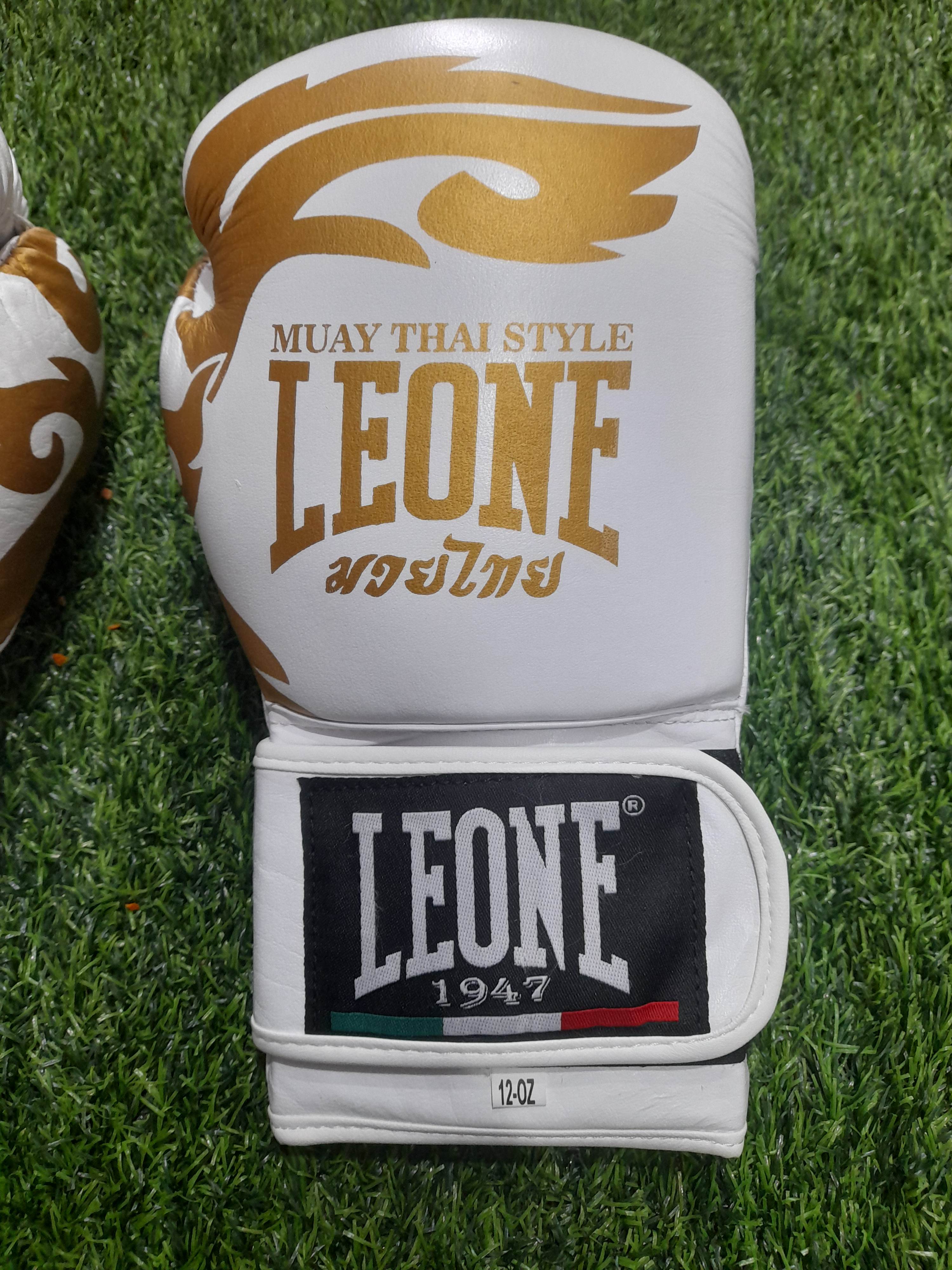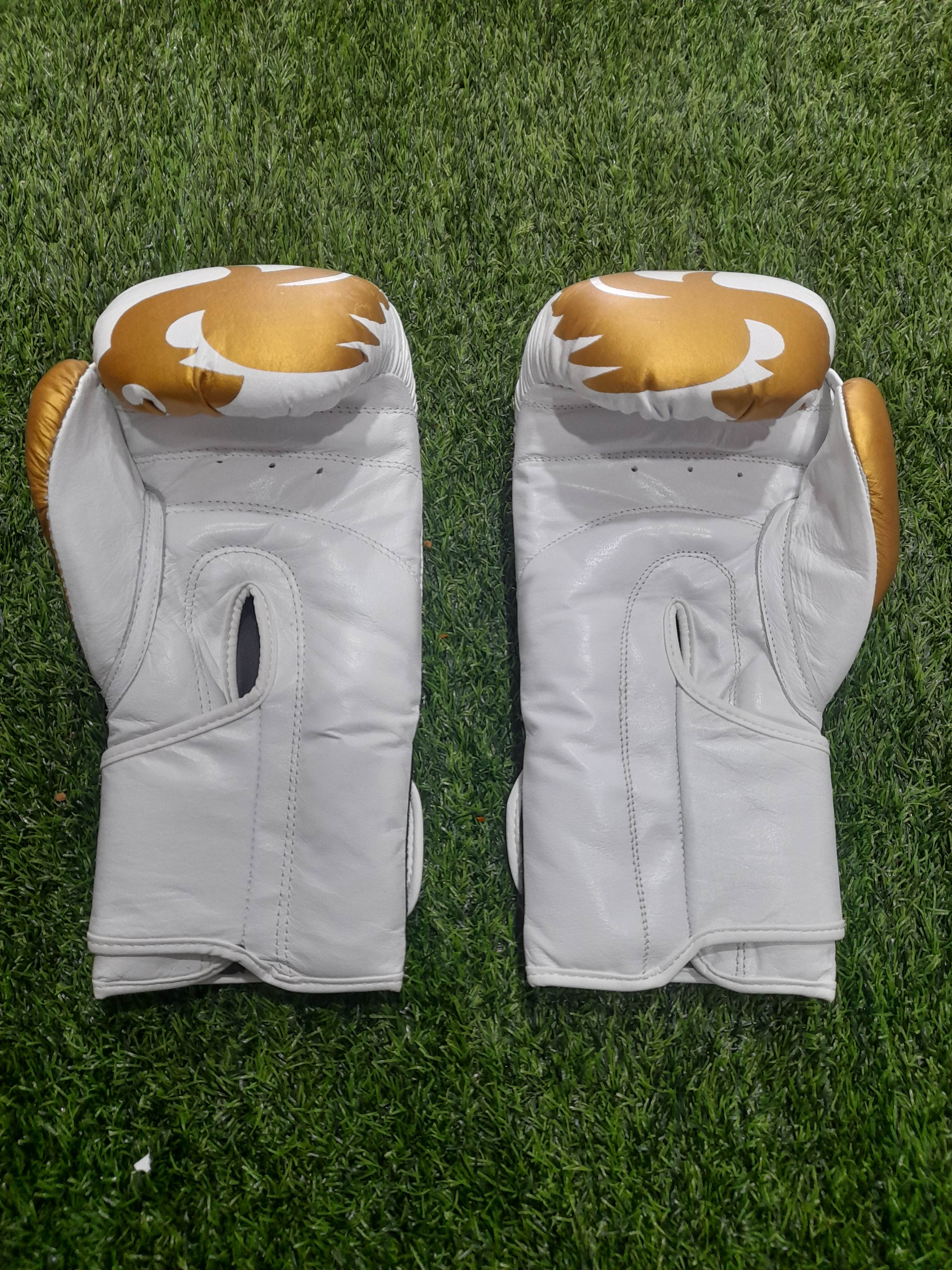 دستکش بوکس اورجینال. دستکش بوکس چرم اصلی برند لئون سفید طلایی سایز ۱۲