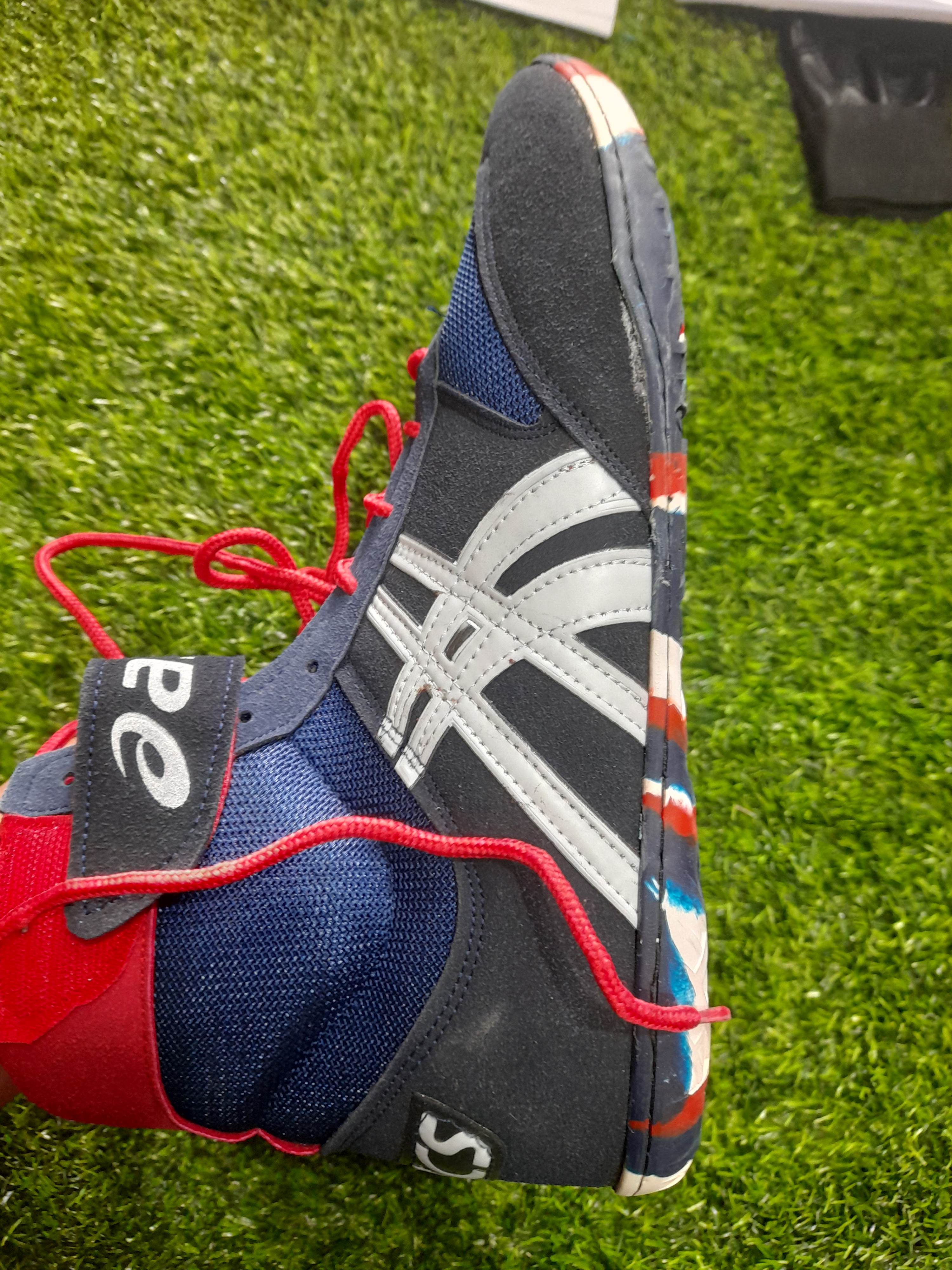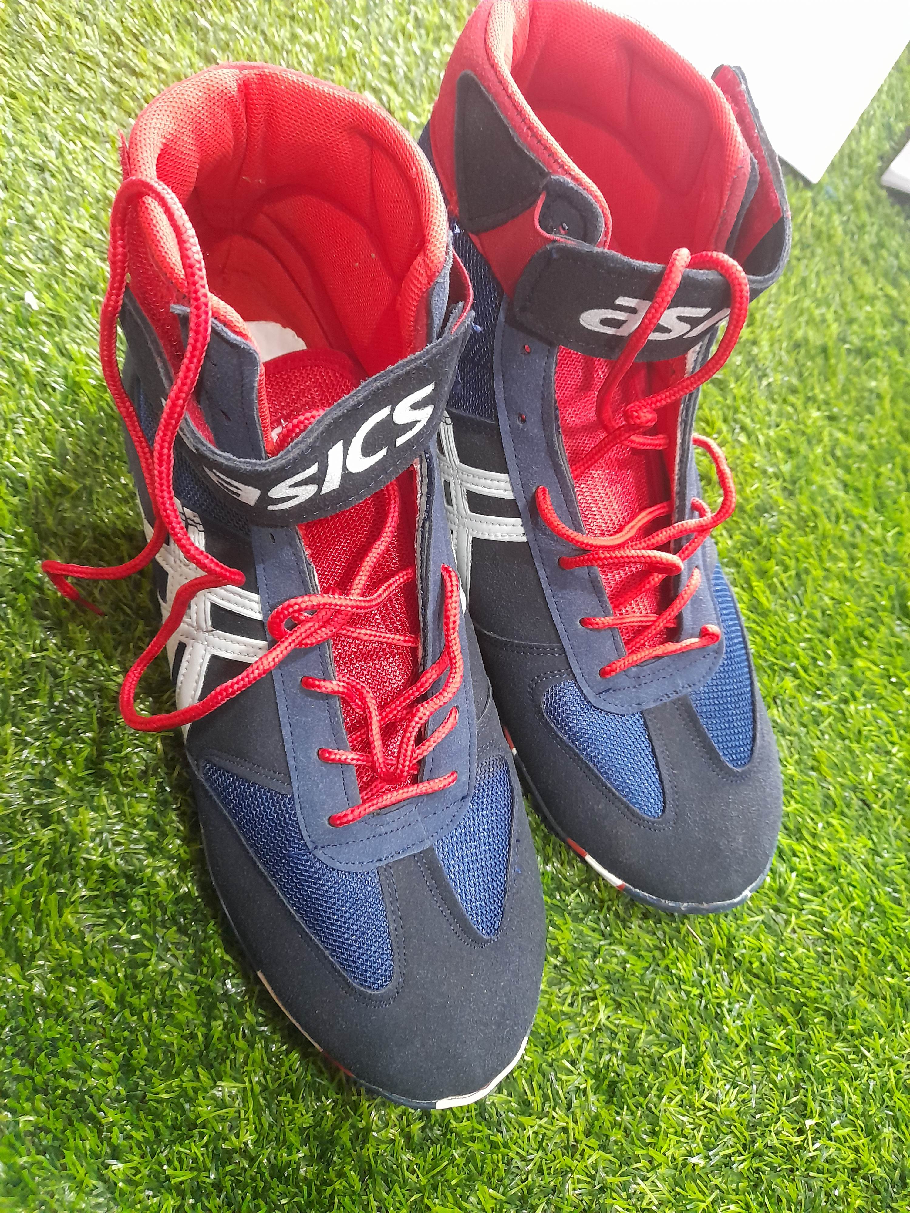 کفش کشتی.کفش کشتی ساقدار.کفش کشتی آسیکس ساقدار سرمه ای سایز ۴۵ فقط یک عدد مانده