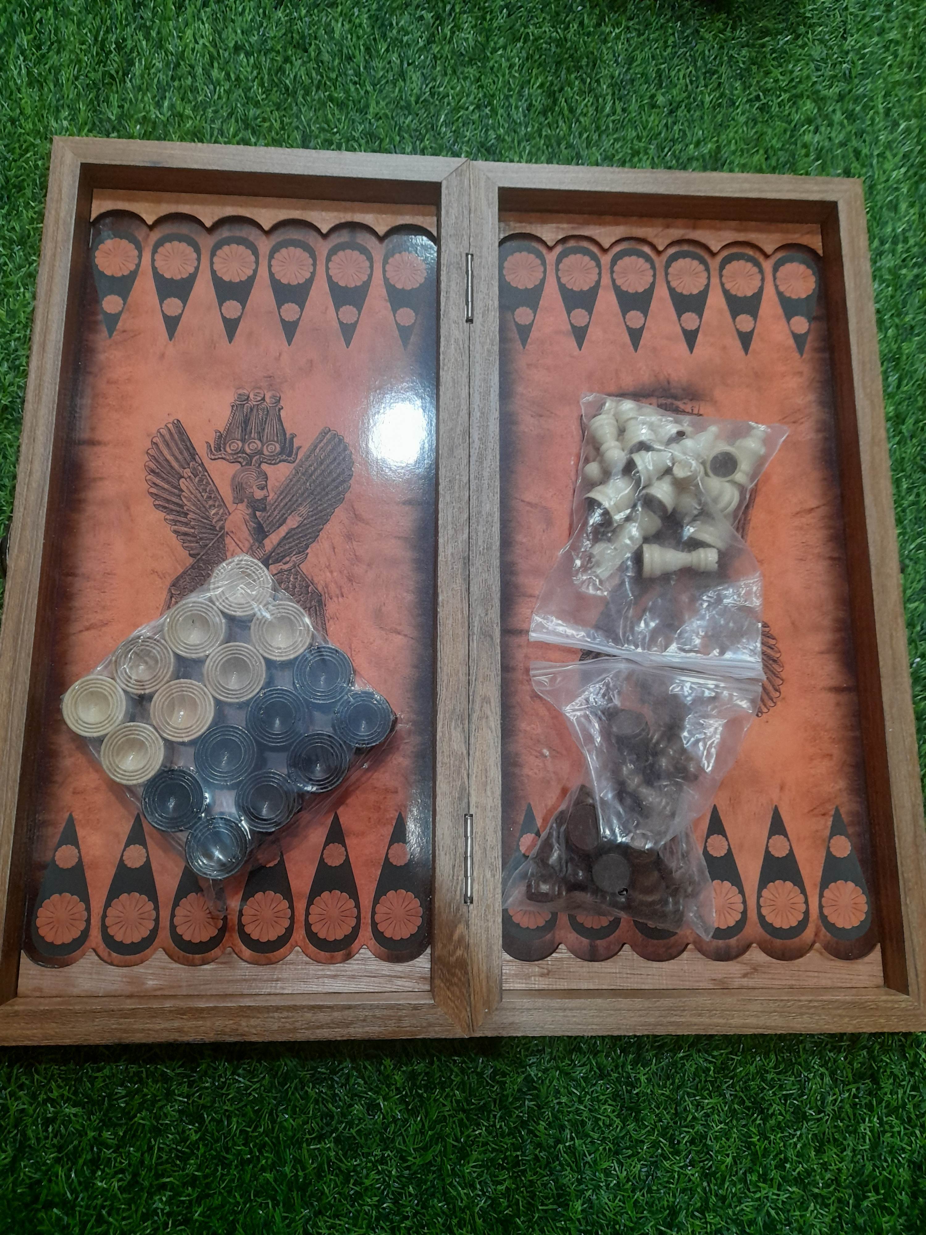 شطرنج و تخته نرد چوبی اعلا با مهره و بدون مهره