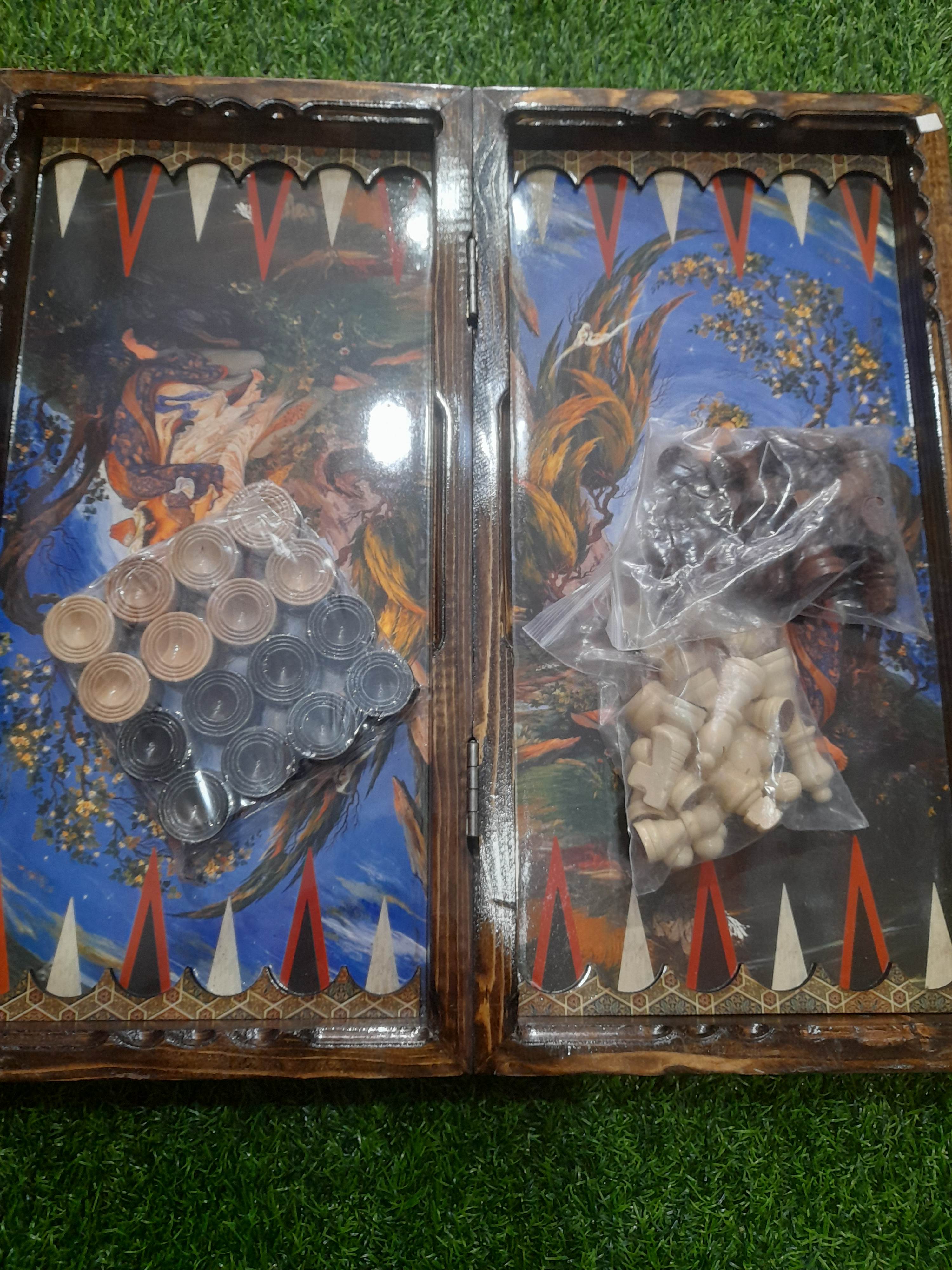 شطرنج و تخته نرد چوبی اعلا با مهره و بدون مهره