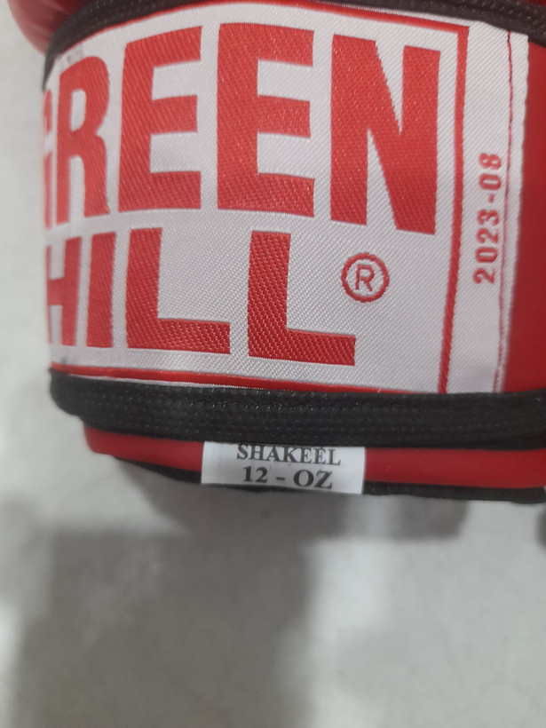 دستکش بوکس قرمز رنگ گرین هیل سایز 12 دارای چسب بسیار محکم و قوی.در رنگبندی قرمز و مشکی و آبی در فروشگاه ورزشی آنلاین اسپرت شاپ.
