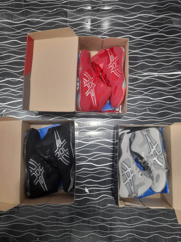 کفش کشتی آسیکس خارجی هایکپی در سه رنگ مشکی و قرمز و طوسی