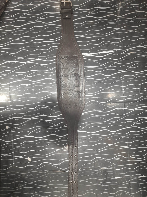 کمربند بدنسازی چرم مشکی طرح پادشاهان