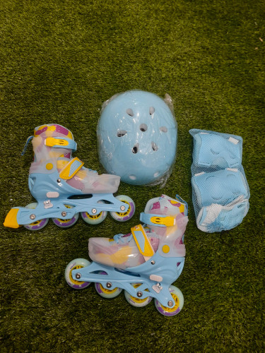کفش اسکیت خارجی هارد تیغه فازی آبی برند ام وی ای سایز اسمال ۳۰ تا۳۳ و مدیوم ۳۴ تا ۳۷