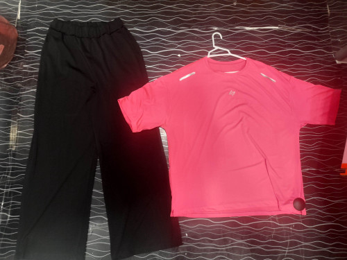 ست زانه نیمتنه و لگ ورزشی صورتی و بنفش کمرنگ سایز لارج تا ۲ ایکس